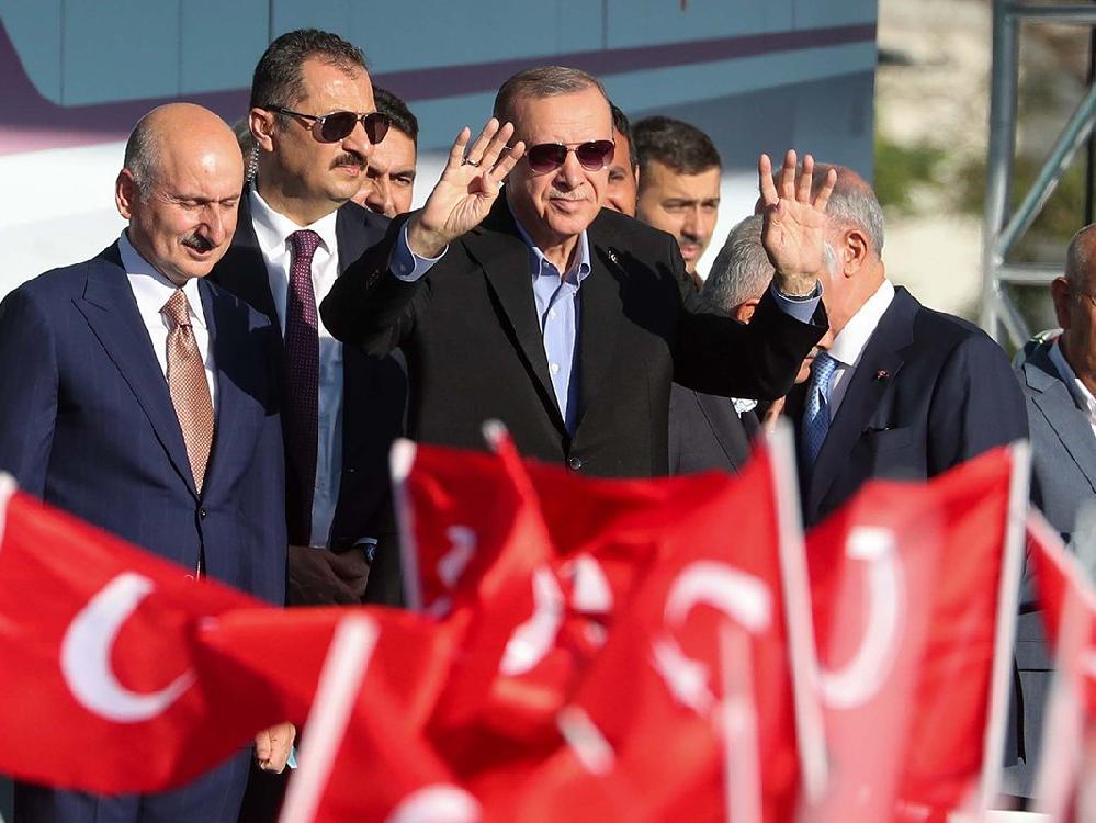 Cumhurbaşkanı Erdoğan, "Tek millet, tek bayrak, tek vatan, tek devlet. Bir olacağız, iri olacağız, diri olacağız, kardeş olacağız, hep birlikte Türkiye olacağız." dedi.
