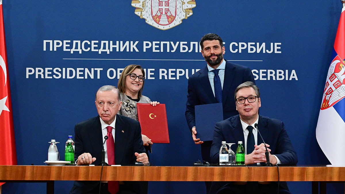 Erdoğan, "Münasebetlerimizin ahdi zeminini güçlendirecek metinlere sizlerin huzurunda 11 anlaşmaya imzayı attık. Ayrıca Balkanlar, Orta Doğu ve Ukrayna özelinde küresel ve bölgesel meseleler hakkında görüş alışverişinde bulunduk. Vucic'in belirttiği gibi Sırbistan'la ilişkilerimizde adeta altın çağı yaşıyoruz" diye konuştu.