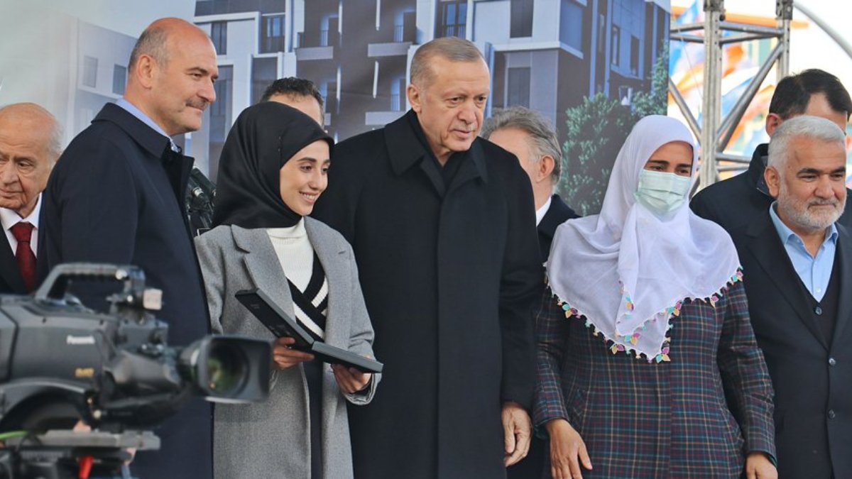 Cumhurbaşkanı ve AKP Genel Başkanı Recep Tayyip Erdoğan bugün Diyarbakır Kışla Caddesi’nde, deprem konutları temel atma ve 1432 konut ve 17 dükkan anahtar teslim törenine katıldı. Törende MHP Genel Başkanı Devlet Bahçeli ile HÜDA-PAR Genel Başkanı Zekeriya Yapıcıoğlu da yer aldı.