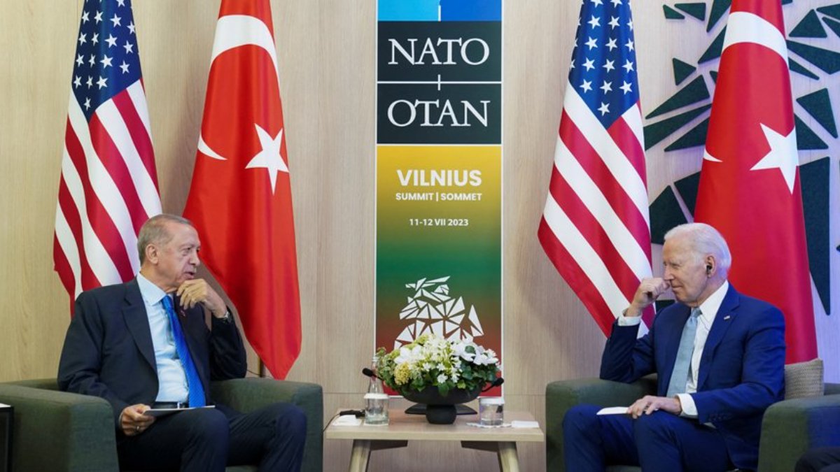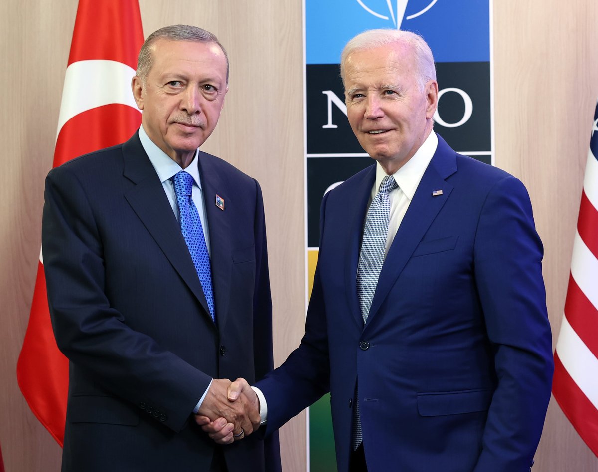 Erdoğan'ın, Biden ile görüşmesinde, Dışişleri Bakanı Hakan Fidan, Milli Savunma Bakanı Yaşar Güler, MİT Başkanı İbrahim Kalın, Cumhurbaşkanı İletişim Başkanı Fahrettin Altun, Savunma Sanayii Başkanı Haluk Görgün ile Cumhurbaşkanlığı Başdanışmanı Büyükelçi Akif Çağatay Kılıç da yer aldı.