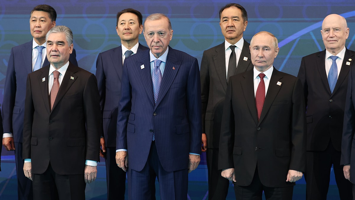Fotoğraf çekiminde Cumhurbaşkanı Erdoğan'ın sağında Rusya Devlet Başkanı Putin, solunda ise Türkmenistan Milli Lideri ve Halk Maslahatı Başkanı Berdimuhammedov bulundu.