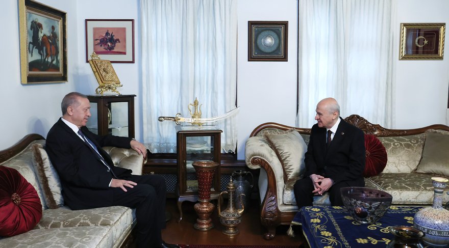 Cumhurbaşkanı ve AKP Genel Başkanı Recep Tayyip Erdoğan, Türkmenistan ziyareti öncesi MHP Genel Başkanı Devlet Bahçeli'yi Ankara'nın Çankaya ilçesi Beytepe'deki evi Devlet Bey Konağı'nda saat 16.10'da ziyaret etti.