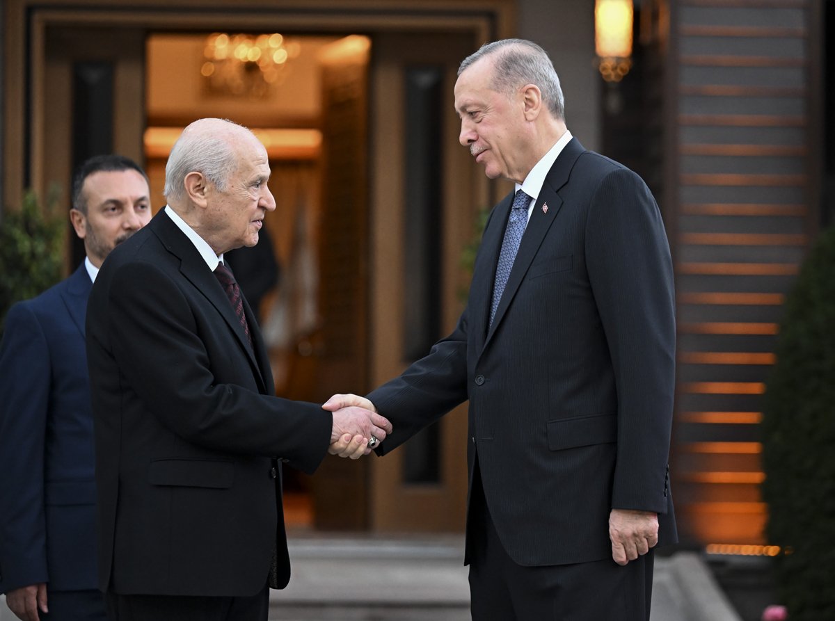 Bahçeli, Erdoğan'ı evinin giriş kapısında karşıladı. Erdoğan ve Bahçeli, gazetecileri selamladıktan sonra görüşmeye geçti.