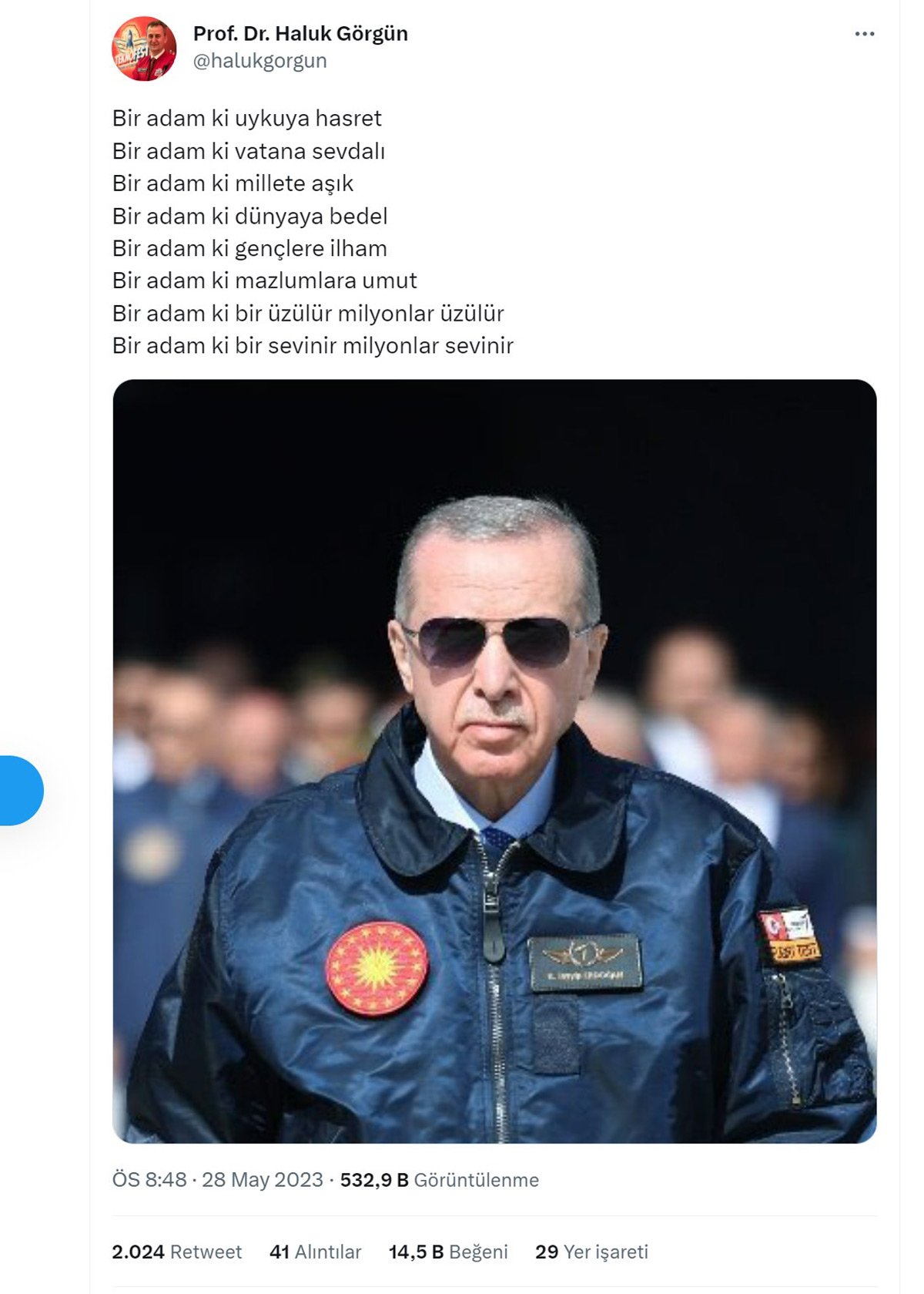 Görgün sosyal medya hesabından, Erdoğan’ın üniformalı fotoğrafı ile birlikte övgü dolu dizelerini de paylaştı.‘HİKAYESİ BİR DERS’