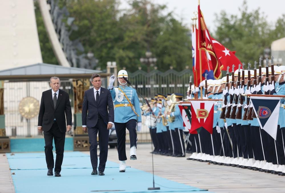 Cumhurbaşkanı Erdoğan, Pahor'u Cumhurbaşkanlığı Külliyesi'nin ana giriş kapısında karşıladı. Erdoğan ve Pahor'un tören alanındaki yerlerini almalarının ardından, 21 pare top atışı eşliğinde iki ülkenin milli marşları çalındı. Pahor, Muhafız Alayı Tören Kıtası'nı 'merhaba asker' diyerek selamladı.