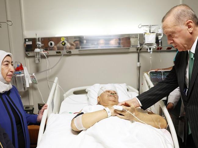 Erdoğan, Azerbaycan'da trafik kazası geçiren AKP Genel Başkanvekili Binali Yıldırım ve AKP İstanbul Milletvekili Şamil Ayrım'ı tedavi gördükleri Başakşehir Çam ve Sakura Hastanesi'nde ziyaret etti. (DHA)
