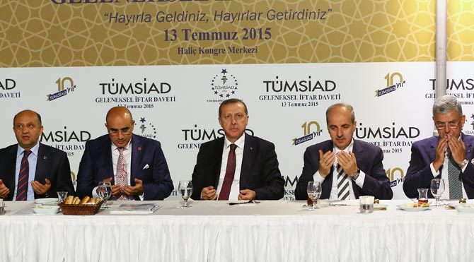 Cumhurbaşkanı Recep Tayyip Erdoğan, Tüm Sanayici ve İşadamları Derneği'nin (TÜMSİAD) Haliç Kongre Merkezi'nde düzenlediği iftar yemeğinde yaptığı konuşmada koalisyon görüşmelerine ilişkin çarpıcı açıklamalarda bulundu. Hükümeti kurma görevini henüz 5 önce veren Erdoğan, koalisyon görüşmelerinin resmi başlama tarihinin üzerinden 24 saat bile geçmeden ilginç bir çıkış yaptı. Erdoğan "Milletimizin sabrı ve tahammülü giderek azalıyor." dedi.