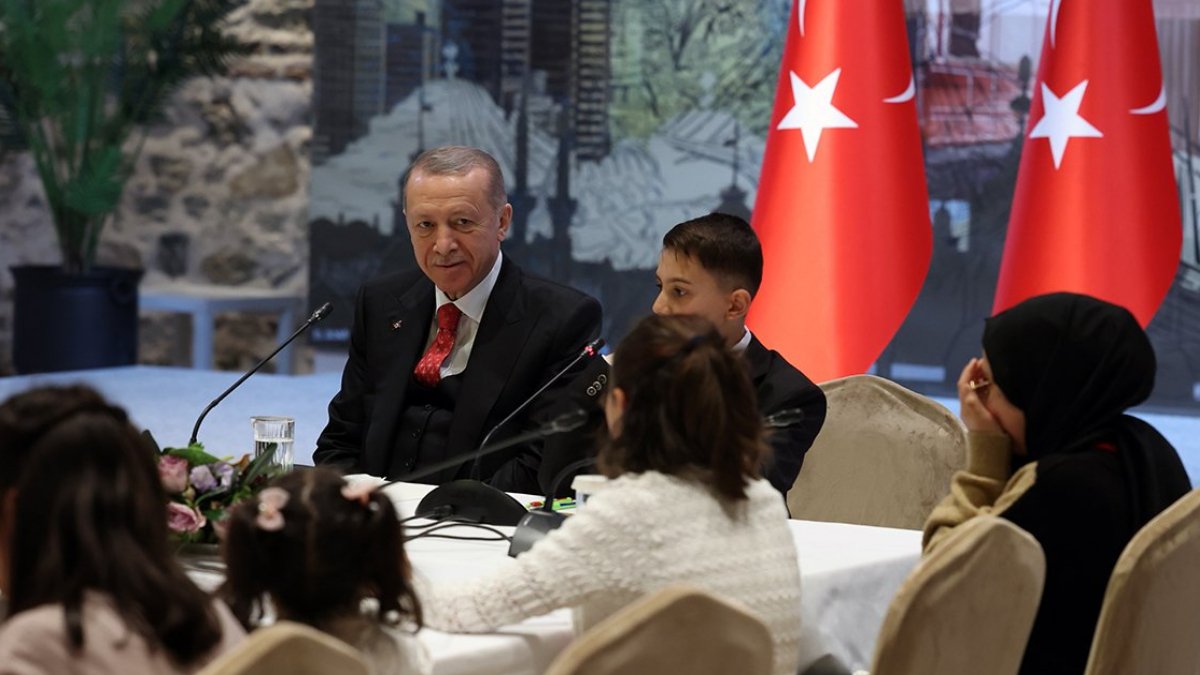 Cumhurbaşkanı ve AKP Genel Başkanı Recep Tayyip Erdoğan, 23 Nisan Ulusal Egemenlik ve Çocuk Bayramı dolayısıyla depremzede çocukları kabul etti. Her bir çocuk bir bakan koltuğuna oturarak hedeflerini anlattı.