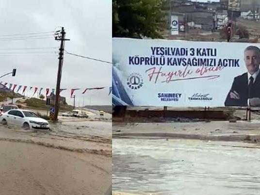 Şahinbey Belediyesi CHP’li Meclis Üyesi Uğur Kalkan, Cumhurbaşkanı Erdoğan tarafından açılışı yapılan köprülü kavşağın bulunduğu bölgedeki yağmur çilesini paylaşarak, “Burası her yağmurda birçok yerini yağmur sularının bastığı Gaziantep. Güneşli günde şehri herkes yönetir. Önemli olan, yağmur yağdığında vatandaşı mağdur etmemek” şeklinde tepkisini dile getirdi.