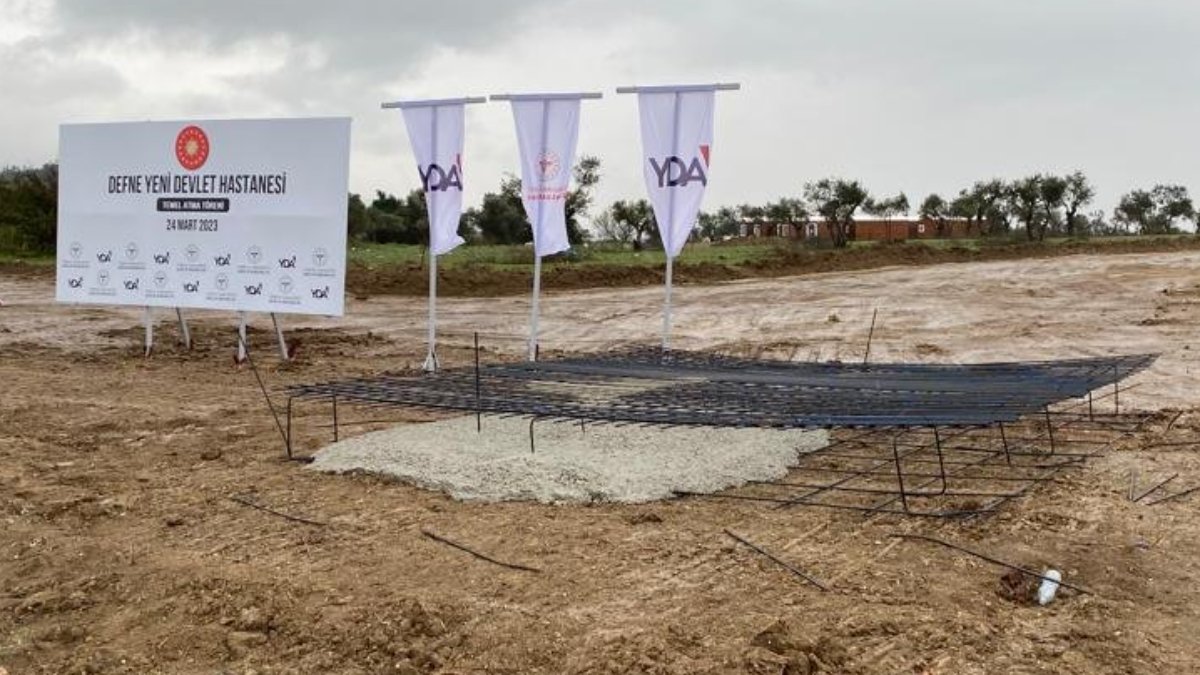 Temel atma programın ardından ise Defne Devlet Hastanesi’nin, temelinin atıldığı alanın görüntüsü sosyal medyada gündem oldu. Canlı yayında dar açıyla yayınlanan görüntülerin geniş açıyla çekilen fotoğrafında bir miktar demirin bulunduğu küçük bir alanda betonun döküldüğü görüldü.