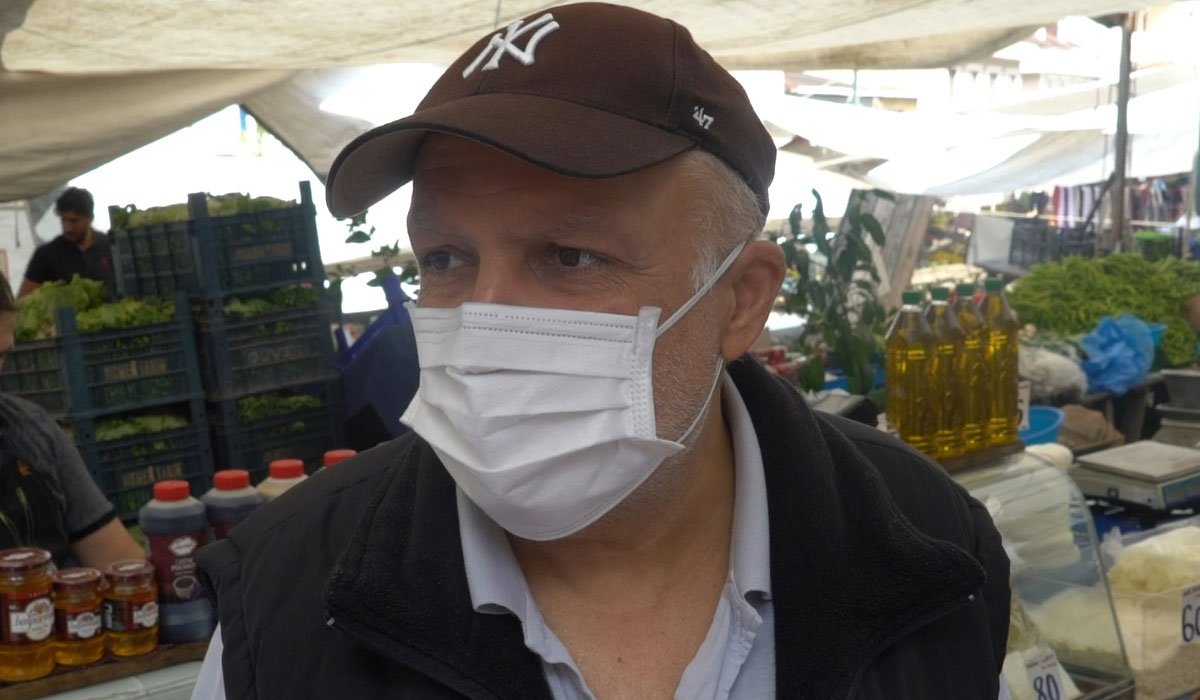 Ali Serman: "Bir şey almadan çıkıp gideceğiz... Etiketleri görünce aklım gidiyor... Emekliyiz, kafa kalmıyor... Emekli maaşı yeter mi pazara? İstediklerimizi gönlümüzce alamıyoruz. Enflasyon düşmez, yalan söylüyorlar."