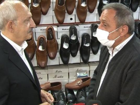 Kılıçdaroğlu daha sonra bir ayakkabıcıya uğradı. Kılıçdaroğlu’nun durumunu sorduğu ayakkabı satıcısı da kendilerinin iyi olması için Türkiye'nin iyi olması gerektiğini vurgulayarak, bölgenin en büyük sorunun çay olduğunu söyledi.