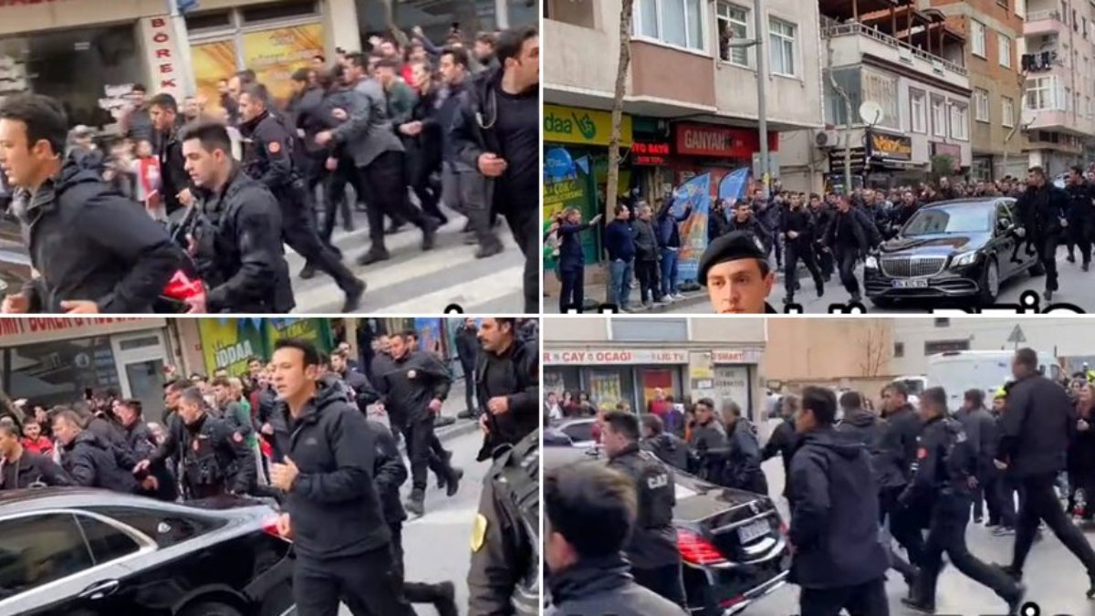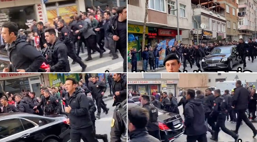 Sosyal medyada gündem olan videoda, yol kenarında sabit bekleyen polislerin yanı sıra, onlarca silahlı ve silahsız koruma polisinin Erdoğan’ın zırhlı aracının peşinden koştuğu görüldü.