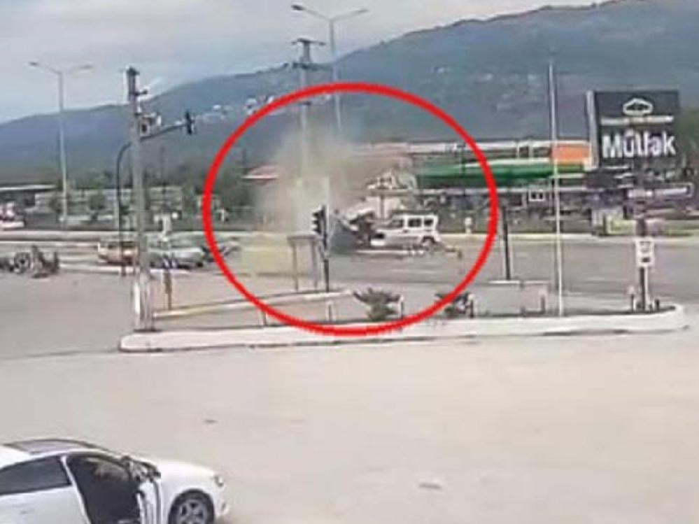 Durumu ağır olan polis memuru Hızır Bekir Baybora, Balıkesir Atatürk Şehir Hastanesine sevk edildi. Kaza anı ise çevrede bulunan bir iş yerinin güvenlik kamerasına yansıdı.