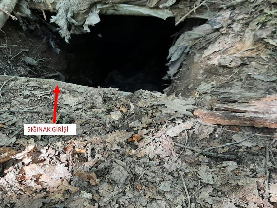 İnsansız hava araçları ile patlayıcı madde arama köpeğinin de kullanıldığı aramada ağaçlardan kamufle edilen sığınak ile depo tespit edildi.