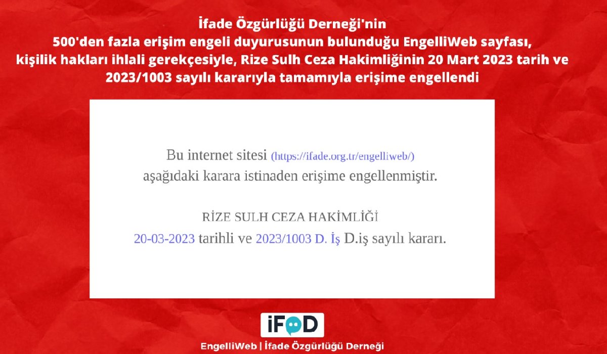 Hukukçu, akademisyen ve insan hakları aktivistlerinin bir araya geldiği İfade Özgürlüğü Derneği bünyesinde faaliyet gösteren EngelliWeb erişime engellenen haber ve web siteleriyle ilgili duyuruları yorumsuz bir şekilde listeliyordu.