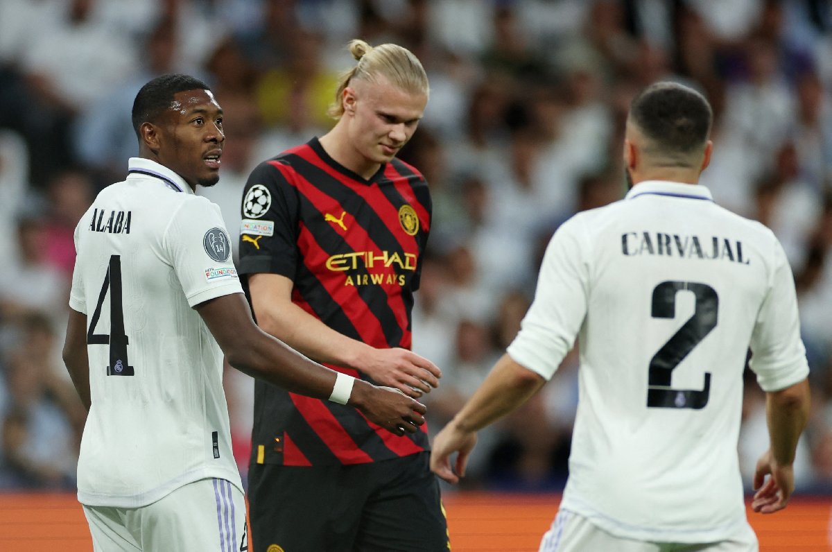 Manchester City'deki ilk sezonunda rekorları alt üst eden Erling Haaland, Real Madrid ile oynanan ilk maçta skor katkısı veremedi. Fotoğraf: Reuters.Erling Haaland'ın babası, Real Madrid taraftarına hareket çekti, tribünden çıkartıldı