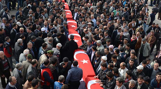 TÜRK BAYRAĞINA SARILI CENAZELER TÖREN ALANINA GETİRİLDİ