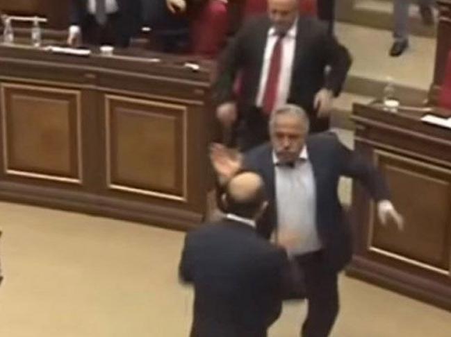 Parlak Ermenistan partisi Milletvekili Edmon Maroukian, kürsüde konuşma yaptığı sırada Milletvekili Sassoun Mikaelian ile tartışmaya başladı.
