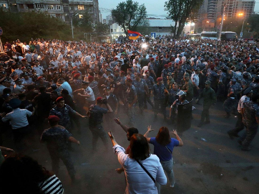 Ermenistan'ın başkenti Erivan'da Başbakan Nikol Paşinyan'ın evine ve hükümet binasına doğru yürüyüşe geçen protestocular, polisin sert müdahalesiyle engellendi. Tansiyonun yükselmesiyle çıkan olaylarda 39'u polis olmak üzere toplam 60 kişi yaralanarak hastanelere kaldırıldı.