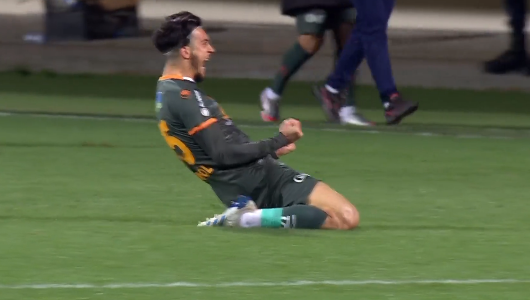 Tayfur Bingöl'ün golden sonra Gaziantep FK yedek kulübesine doğru yaptığı gol sevinci.