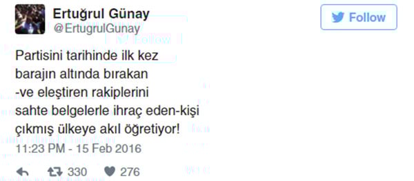 Eski Bakan Ertuğrul Günay, 1992'den 1994 sonuna kadar CHP'nin Genel Sekreterlik görevinde bulundu. 1994'teki yerel seçimlerde CHP'den İstanbul Büyükşehir Belediyesi Başkanlığına aday oldu. CHP'nin TBMM dışında kalması üzerine yeniden aktif siyasete döndü. Genel Başkanlığa aday oldu. 2004 seçimlerinde Ordu'da DSP'li adayı desteklediği gerekçesiyle CHP'den ihraç edildi. Günay'ın ihraç edildiği sırada CHP'nin genel başkanlığında Deniz Baykal bulunuyordu.