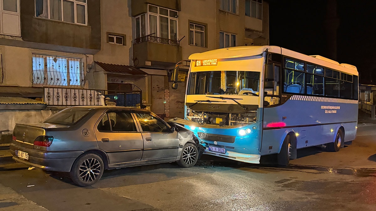 Erzurum'un Palandöken ilçesinde belediye otobüsü ile otomobilin çarpışması sonucu 1 kişi yaralandı.