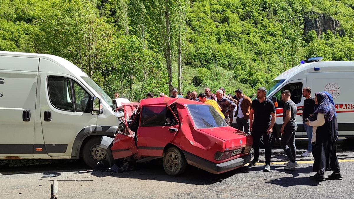 Erzurum'un Şenkaya ilçesinde minibüsle çarpışan otomobildeki 2 kişi yaşamını yitirdi, 1 kişi de yaralandı.