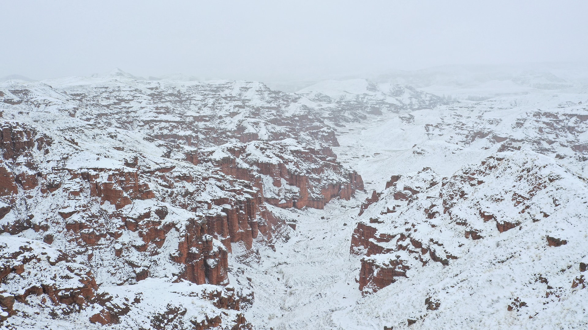 Beyaza bürünen peri bacaları Amerika'daki ünlü Grand Kanyon ile benzerlik taşıyor.