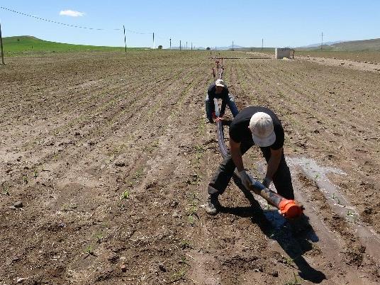 *Sonrasında yağış düşer ve vejetasyon dönemi başlar. Ama bu sene böyle bir şey olmadığı için tohum ekildikten sonra sulama gerekiyor. Çiftçilerimiz de bunu yağmurlama sistemiyle yapmaya çalışıyor. (DHA)