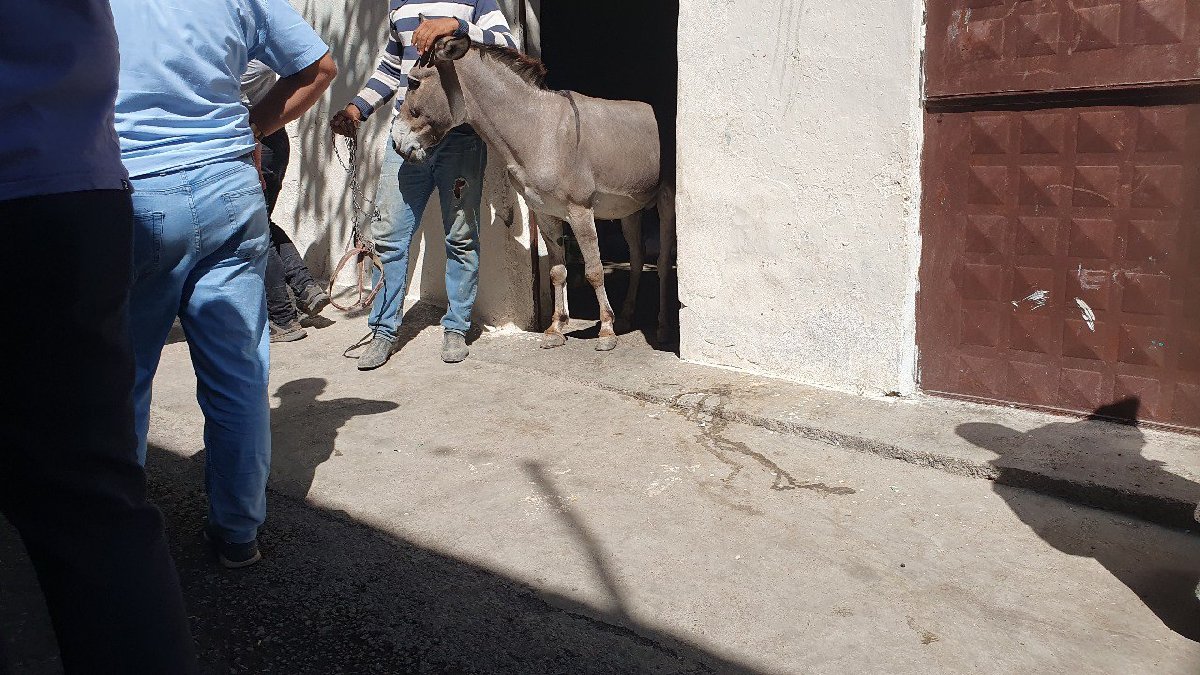 Şiddet gören eşek ise koruma altına alınıp, hayvan barınağına götürüldü. Özel alana alınan eşek, artık burada kalacak. (DHA)