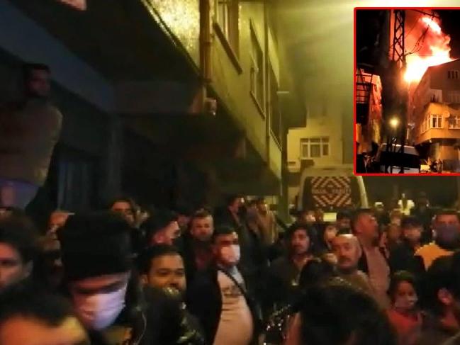 Esenler'de bir binanın çatısı alev alev yandı, mahalle sakinleri sokağa döküldü