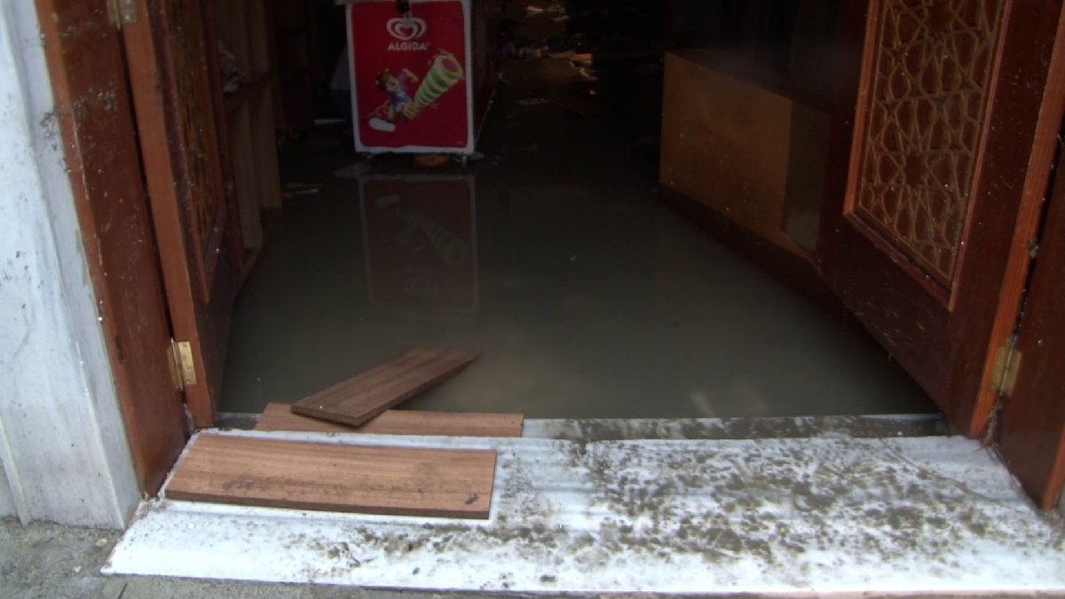 Bodrum ve giriş kattaki işyeri ve evler suya gömüldü. (İHA)