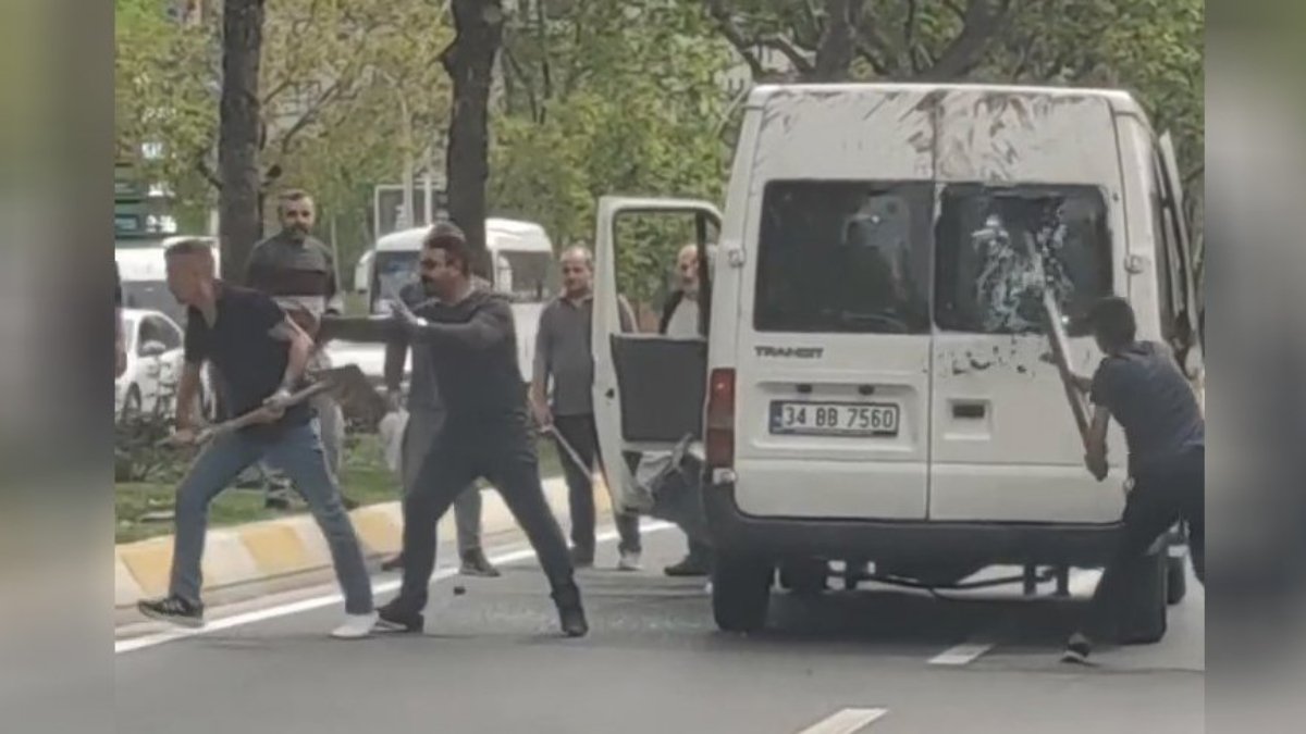 İstanbul Esenyurt'ta trafikte başlayan tartışma, sopalı kavgaya dönüştü. Ellerinde sopa ve kürek bulunan iki kişi, bir minibüsün camlarını kırdı. O anlar başka bir sürücü tarafından cep telefonu ile kaydedildi.