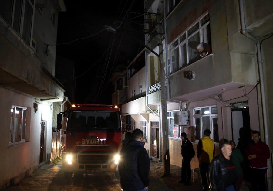 Olay yerine kısa sürede gelen itfaiye ekipleri, ulaşılması zor olan apartmanın çatı katında çıkan yangına müdahalede bulunarak başarılı bir çalışma sonucu yangını söndürdü.  Öte yandan yangını gören çok sayıda mahalle sakini ise sokağa dökülüp, gece geç saatlere kadar itfaiye ekiplerinin yangını söndürme çalışmalarını izlerken, polis ekipleri de çevrede geniş güvenlik önlemleri aldı. Olaya tanıklık eden bir vatandaş, “Çocuk zaten kendi halindeydi karısını istiyordu gelsin diye. ‘Karımı getirmezseniz yakarım evi’ dedi yaktı.  Sonra içeri girdi iyice tedirgin olduk. Baktık içeri girdi alev çıkıyor sonra zaten itfaiye ekiplerini aradık.  İkamet ettiği apartmanda yangın çıkardığı iddia edilen İ.G. isimli vatandaş polis ekipleri tarafından gözaltına alınırken, olayla ilgili soruşturma başlatıldı.