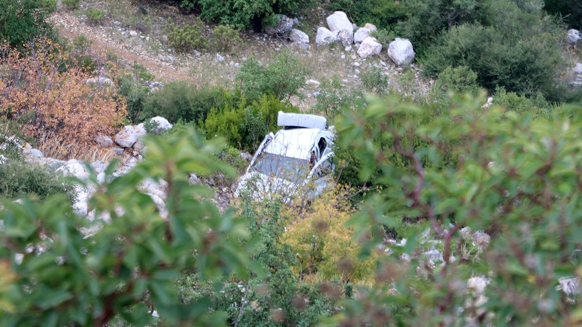 Antalya'nın Alanya ilçesinde eşiyle tartışan kişinin uçuruma yuvarladığı otomobili kullanılamaz hale geldi.