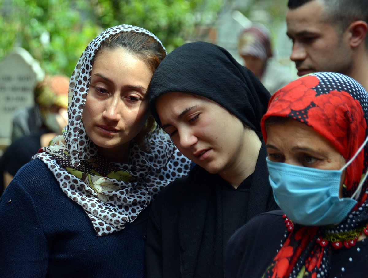 Şükriye Gür'ün çocukları Ayşe Melek (15), Ali Baran (12) ve Zehra Su (7) da annelerini son yolculuğuna uğurlarken ayakta durmakta zorlandı. Gür'ün cenazesi gözyaşları içinde toprağa verildi. (DHA)
