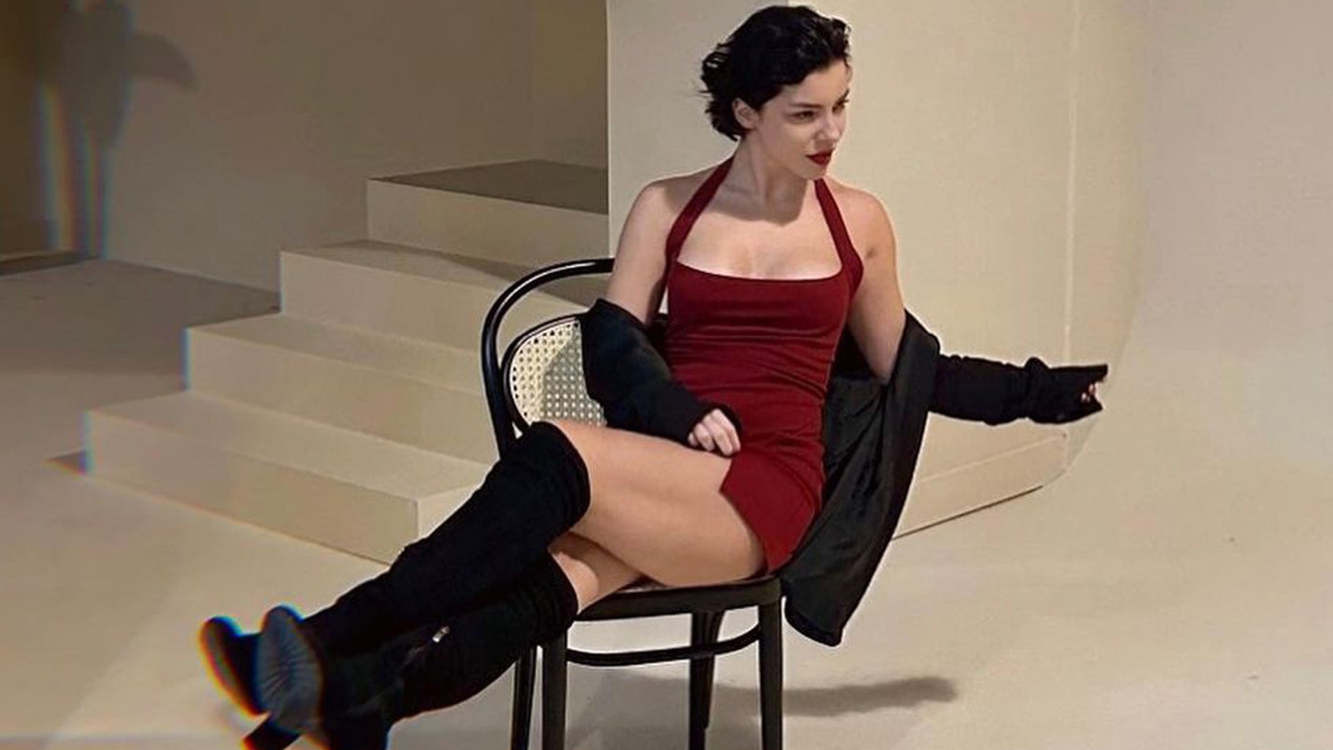 Boluğur geçen gün kırmızı mini elbisesi ve siyah botlarıyla objektif karşısına geçti.