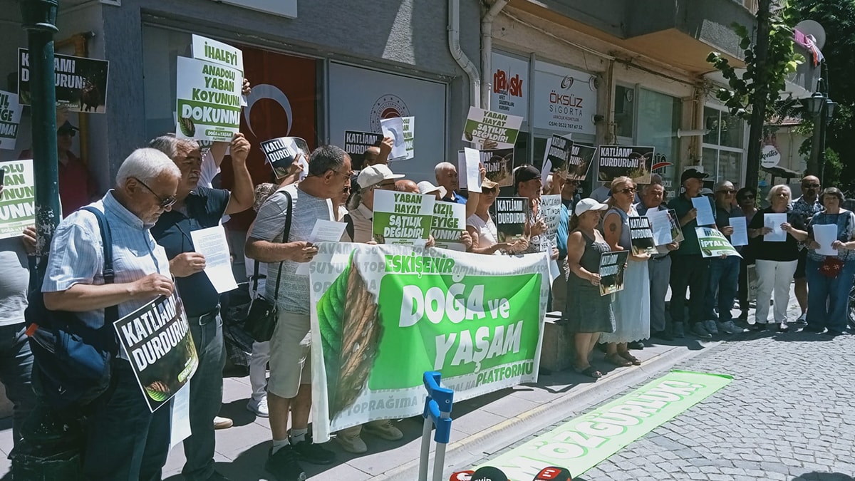 Eskişehir Doğa ve Yaşam Platformu’nun çağrısı üzerine öğle saatlerinde Bölge Müdürlüğü önünde toplanan yaklaşık 100 kişinin ellerinde Katliamı Durdurun, Yaban Hayatı Satılık Değildir, Avcı Adıl Altında Gelen Hayvan Katillerine İlimizde Yer Yok, Kızıl Geyiğe Dokunma yazılı dövizler taşıdıkları görüldü.