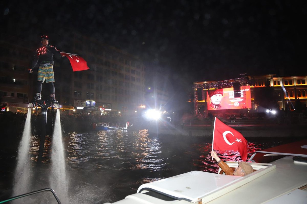 Köprüleri ve Porsuk Çayı kıyılarını dolduran binlerce vatandaş, marşlar söyleyip fener alayını izledi. Fener alayı boyunca botlarda bayrak ve meşale taşıyan gençler, 'Ne mutlu Türk'üm diyene' diye bağırdı. Porsuk Çayı'ndaki Flyboard gösterisini vatandaşlar ilgiyle izledi. Fener alayını izleyen vatandaşlar sık sık 'Mustafa Kemal'in askerleriyiz' sloganı attı.