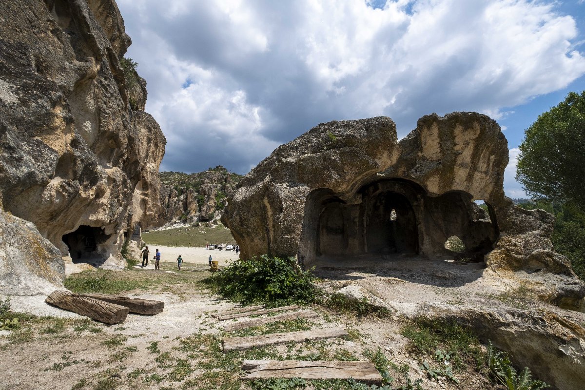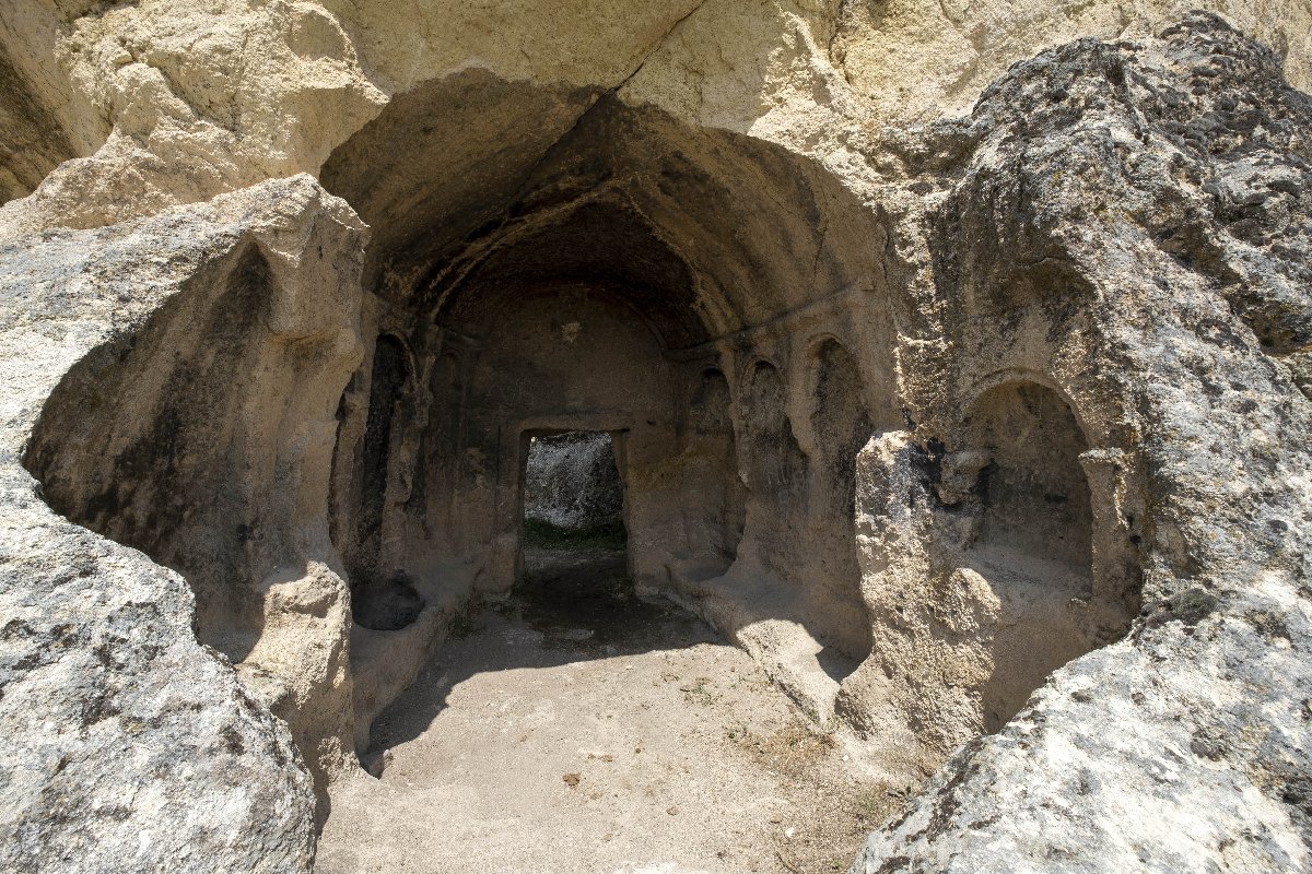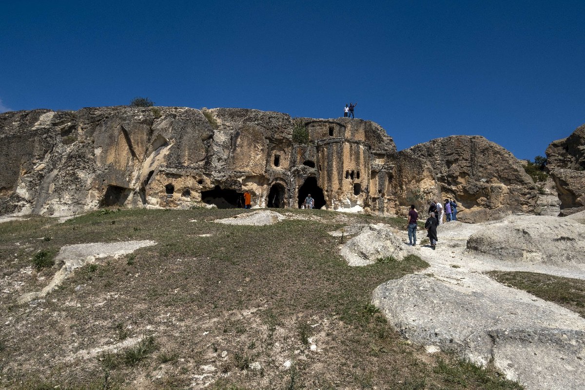 Roma ve Bizans dönemlerine ait aile ve tek kişilik kaya mezar odaları, Bizans Dönemi'ne ait kiliseler ve kaya yerleşimleri, arazinin bu tür bir yerleşime elverişli olması nedeniyle oyularak yapılmış eserlerden bazıları...