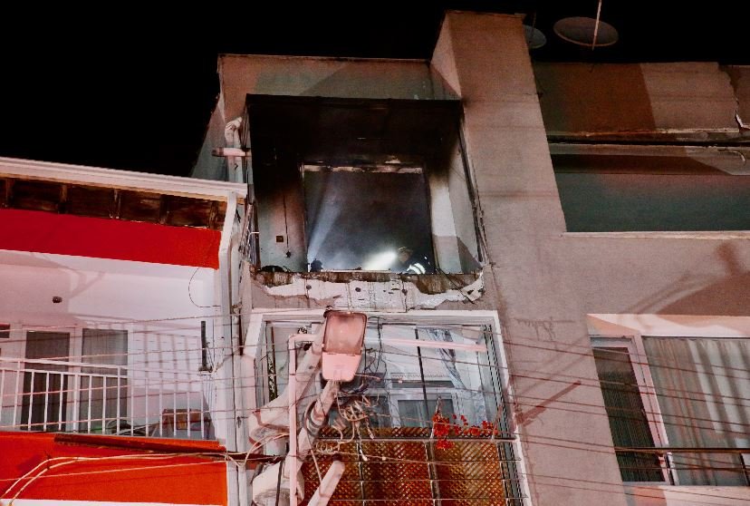 Patlama sonucu daireden düşen mutfak, pencere ve beton parçaları nedeniyle sokak adeta savaş alanına dönerken, park halindeki 3 otomobilde hasar oluştu.