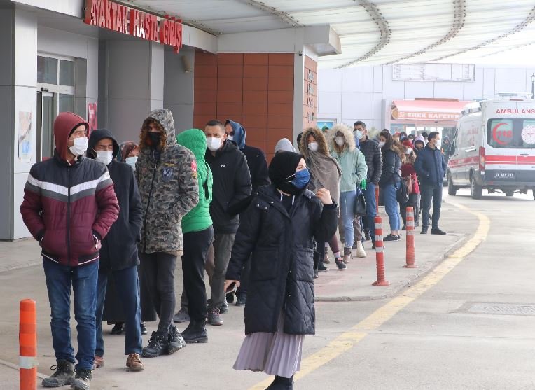 Osmangazi Üniversitesi Tıp Fakültesi Hastanesi'ndeki kuyrukta test sırası bekleyen Sinem Gençsoy "Tüm eklemlerim ağrıyor, başım ağrıyor. Test olmaya geldim" dedi. İran uyruklu üniversite öğrencisi Amir Ali de eşinin verdiği testin pozitif çıkması üzerine hastaneye geldiğini belirterek "Dün de eşim geldi, maalesef 40 dakika yukarıda bekledi.