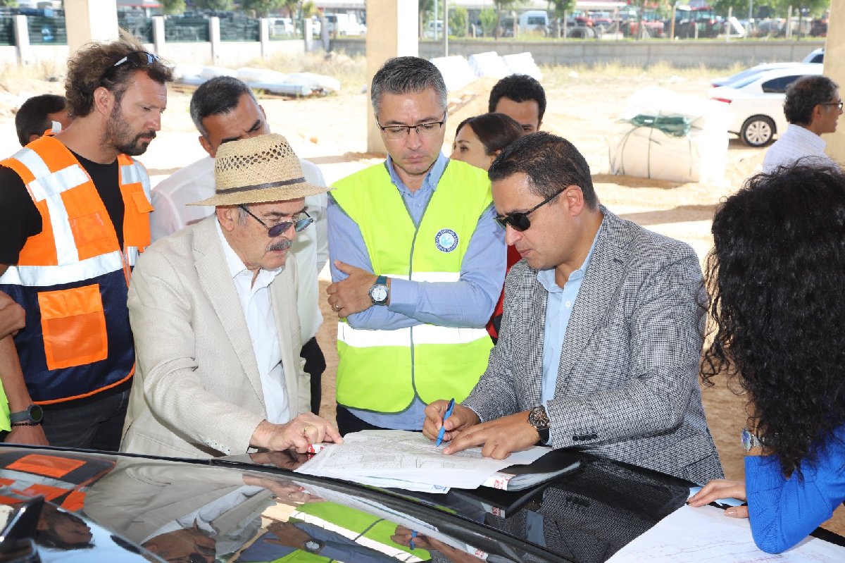 Eskişehir Büyükşehir Belediye Başkanı Yılmaz Büyükerşen, Ankara Yolu Yaş Sebze ve Meyve Hali yanında yapımı devam eden Halk Ekmek'in inşaatında incelemelerde bulundu.