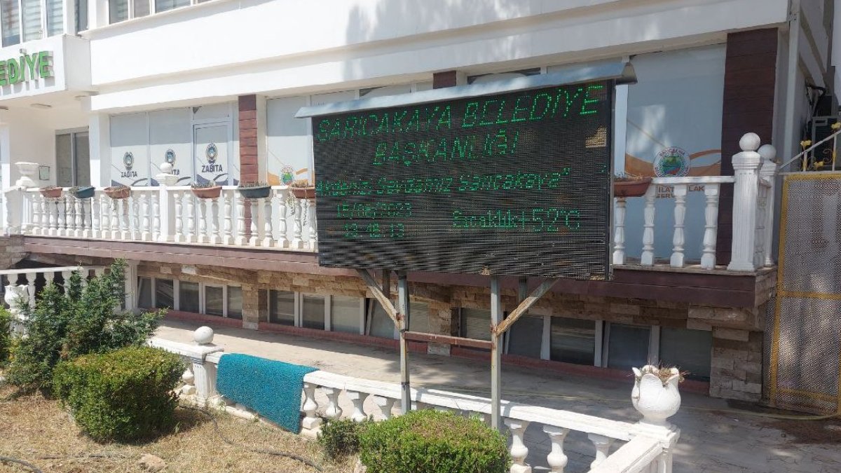 Belediye binası önündeki dijital termometre ise sıcaklığı 52 derece gösterdi.