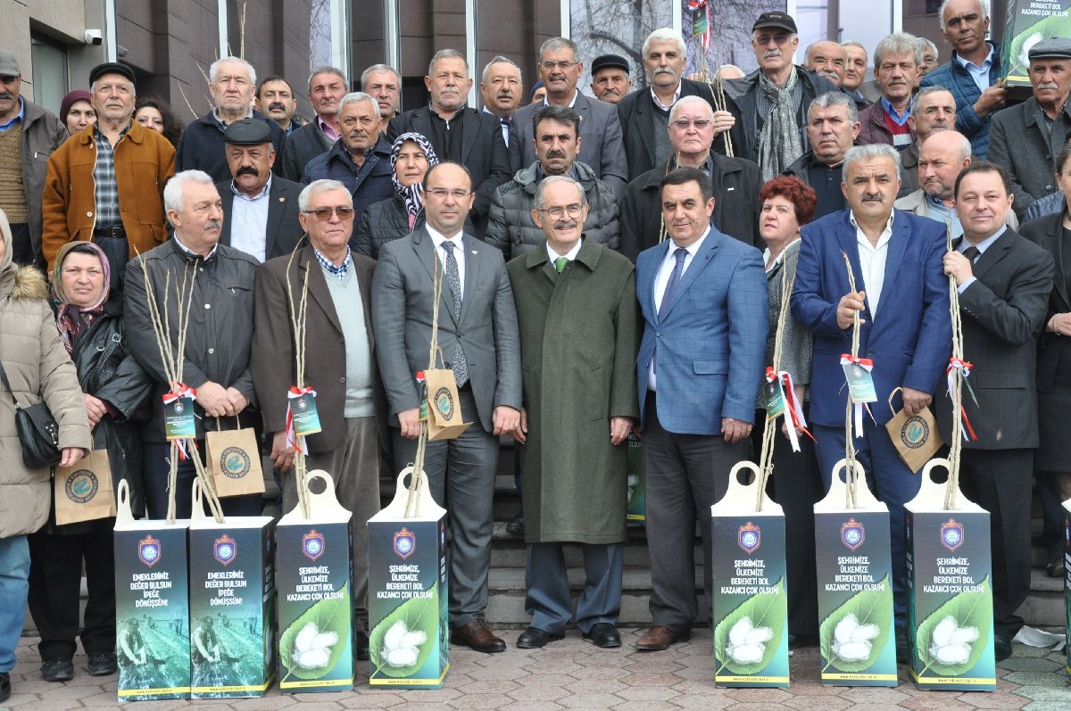 Eskişehir Büyükşehir Belediyesi Meclis Salonu’nda gerçekleştirilen dut fidanı dağıtım töreninde çiftçilerle bir araya gelen Eskişehir Büyükşehir Belediyesi Başkanı Yılmaz Büyükerşen, kırsal kalkınmaya destek olmaya devam edeceklerinin altını çizdi. Dut fidanı dağıtım törenine Koza Birlik Başkanı Ramazan Işık, Koza Birlik Genel Müdürü Aysel Akbaba, Antalya Büyükşehir Belediyesi Tarımsal Hizmetler Dairesi Başkanı Seda Özel, Seyitgazi Belediye Başkanı Uğur Tepe, Mahmudiye Belediye Başkanı İshak Gündoğan ve çiftçiler katıldı.