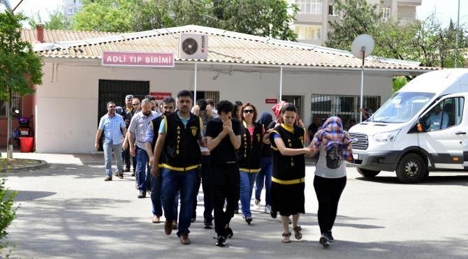 Adana emniyetindeki sorguları tamamlanan ve aralarında eskort sitesini kuran yönetici Özgür A., kardeşi Özkan A., eşi Kader A., baldızı Gönül Ö., üvey annesi Meryem A., Özkan A.'nın eşi Tuğba A. ve kayınpederi Mustafa H.'nin de bulunduğu 12 kişi, adliyeye sevk edildi.