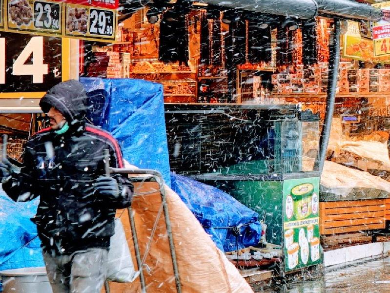 Öte yandan evine ekmek götürmek zorunda olan kağıt-karton toplayıcıları ise çalışmaya devam etti. Soğuk ve karlı havaya rağmen sokak sokak dolaşarak kendileri için gerekli olan malzemeleri bulmaya çalıştılar.