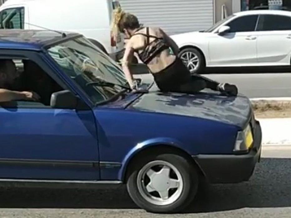 Genç kız, çıktığı aracın üstünde sürücüye aracı sürmesi için “Sür, sür” diyerek seyir halinde olan aracın üstünde de bir süre dans etti. İhbar üzerine olay yerine polis ekipleri sevk edildi. Ekipler M.Ç.’yi yakalayıp gözaltına aldı. Genç kız, gözaltına alındığı karakolda da etrafa saldırarak ortalığı birbirine kattı.