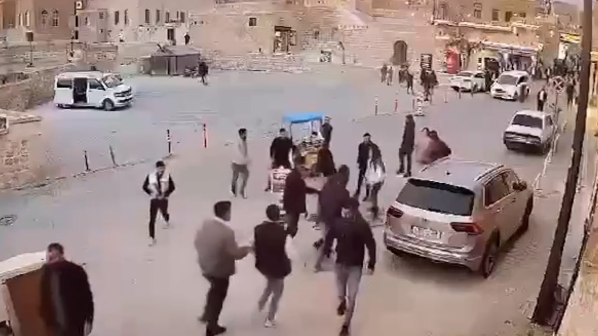 Mardin’in Midyat ilçesinde komşu olan esnaf grupları arasında çıkan, 2 kişinin yaralandığı bıçaklı kavganın güvenlik kamerası görüntüleri ortaya çıktı.